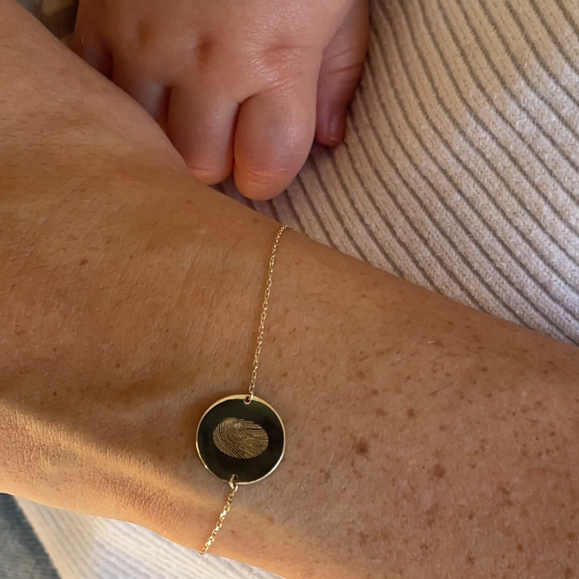 Notre Bracelet d'Empreinte Personnalisé vous permet de transformer cette empreinte unique en un bijou précieux qui sera chéri à jamais. Chaque bracelet est gravé au laser avec une précision experte afin de capturer les moindres détails de l’empreinte, garantissant une gravure à la fois nette et élégante. Avec son design minimaliste et intemporel, ce bracelet n’est pas seulement un magnifique bijou—c’est un souvenir profondément personnel que vous pourrez porter partout avec vous.