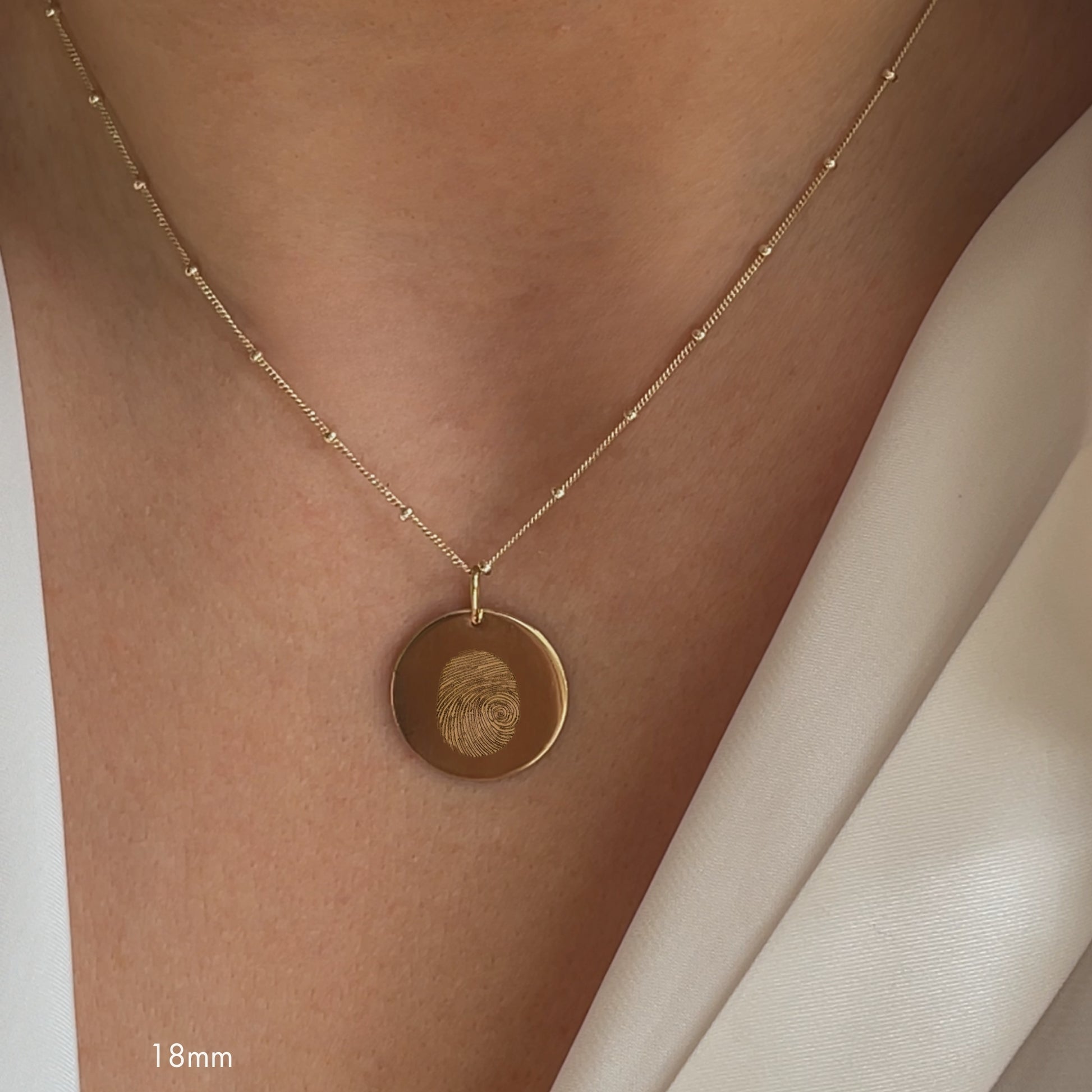 Our Custom Fingerprint Sphere Chain Necklace allows you to transform that unique print into a precious piece of jewelry that will be treasured forever. Each necklace is expertly laser-engraved to capture the intricate details of your loved one’s fingerprint, ensuring the engraving is both clear and elegant. With its minimal and timeless design, this Necklace isn’t just a beautiful piece of jewelry, it’s a deeply personal reminder you can carry with you wherever you go.