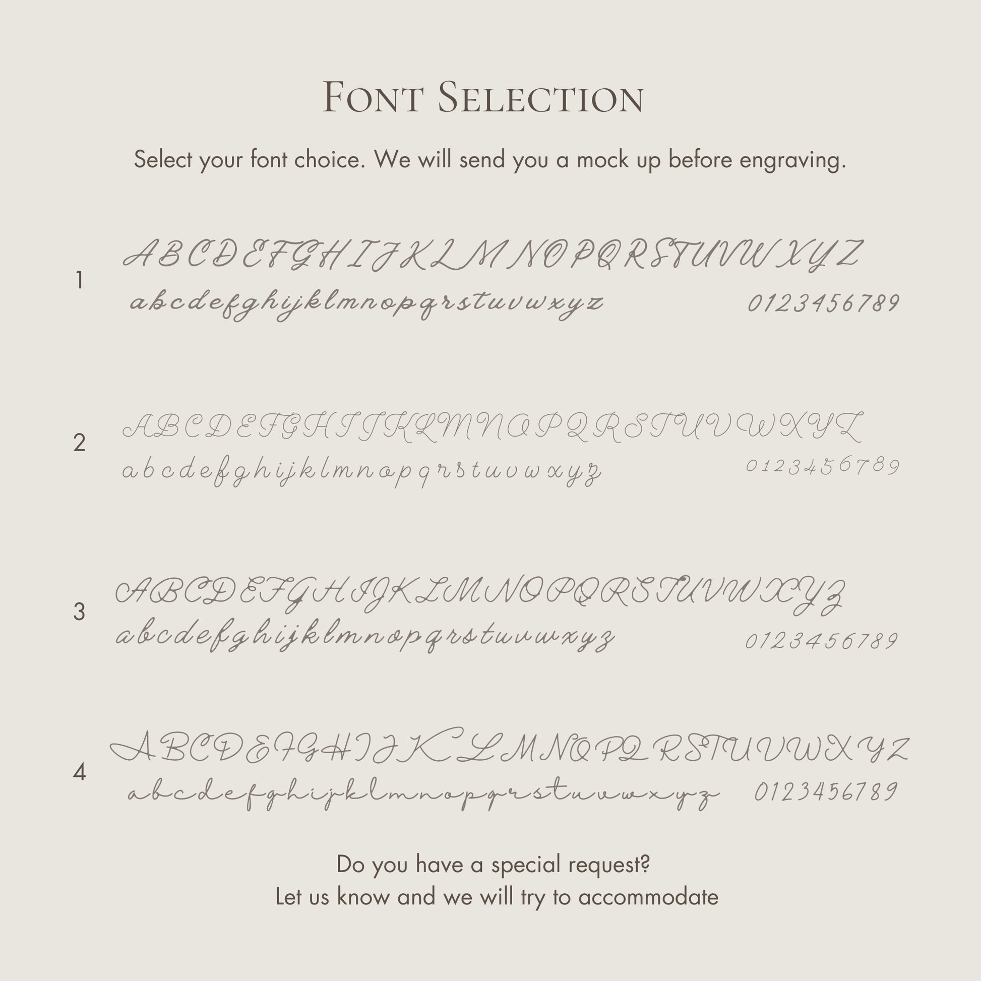 - A mock up of the jewelry will be shared with you for approval before engraving.